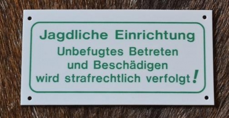"Jagdliche Einrichtung". Kunststoff, wetterbeständig, zum Annageln,Schrauben . Größe ca. 12,5 x 6,5cm.
