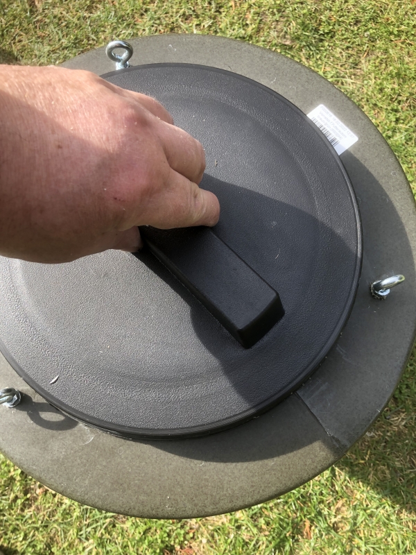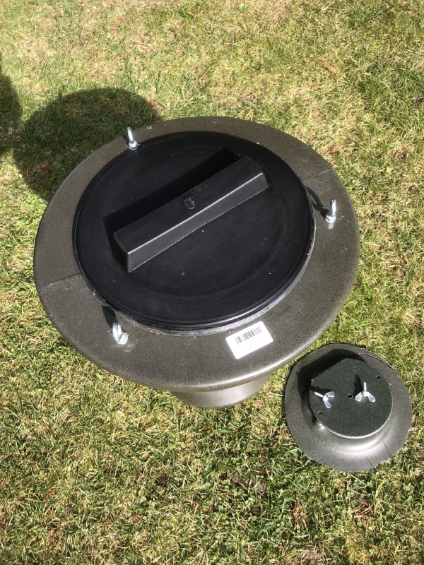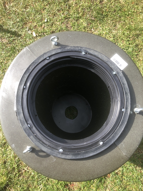 Bohrung für Futterspieralen. Fassungsvermögen ca. 18 kg Kirrgut.