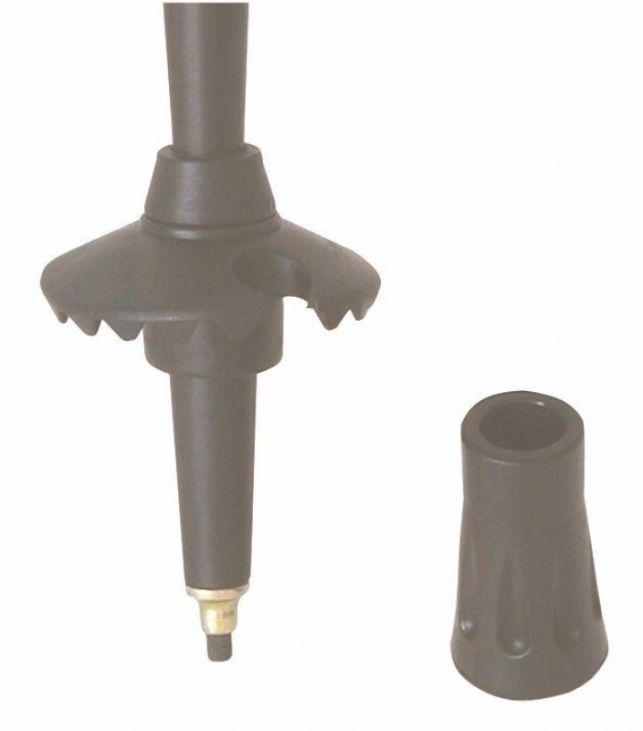 Durch Abnehmen des Fußgummistopfens erhält man eine Stahlspitze welche sich gut in den Boden stoßen läßt.