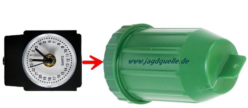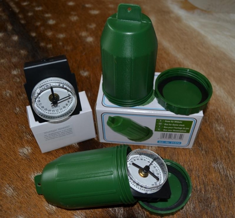 Mir der Wilduhr kann der Zeitpunkt von Wildbewegungen festgehalten werden. Vor allem für Bewegungen in der Nacht ist die Wilduhr sehr nützlich, erspart sie doch langes Ansitzen, gerade bei schlechtem Wetter. Die Uhr steckt in einem Gehäuse aus tritt- und bissfestem Kunststoff, das wasserdichte verschraubt ist. Dieses wird aufrecht stehend an der Kirrung oder andernorts aufgestellt, an dem der Uhrenbesitzer Informationen über die Bewegung des Wildes wünscht. Das Uhrwerk verfügt über eine 24 Stunden Anzeige.