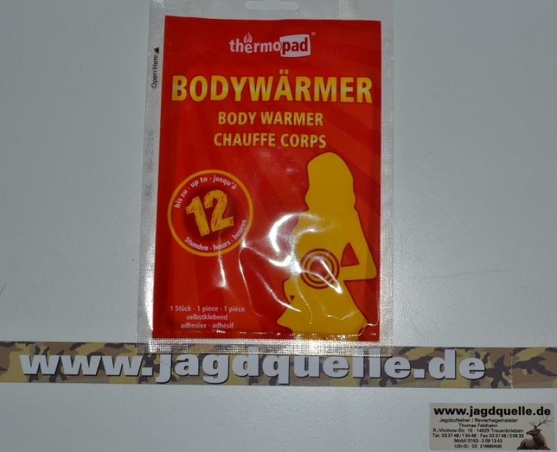 Die Thermopad-Bodywärmer sind mit einer Klebeseite ausgestattet. Dadurch können sie an beliebigen Stellen des Körpers auf der Kleidung angebracht werden. Durch den Kontakt mit Sauerstoff beim Öffnen der Verpackung werden die Pads aktiviert. Sie geben bis zu 12 Stunden Wärme ab. Besonders geeignet für Aktivitäten bei kalten Temperaturen, wie z. B. Stadionbesuche, Skitouren, Spaziergänge, Jagden oder Weihnachtsmarktbesuchen. Sie sorgen bei jeder Gelegenheit für eine angenehme Wärme. Die Anzahl der Pads am Körper kann je nach Bedarf erhöht werden. Einmal verwendbar.
