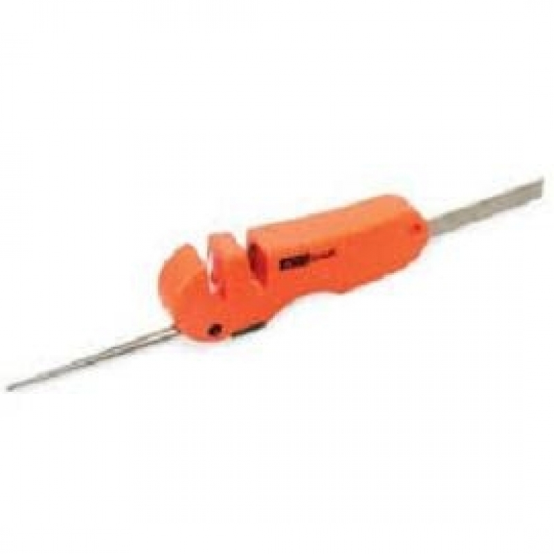 AccuSharp® 4fach-Messer- und Werkzeugschleifer. Vereint den gesamten Schleifbedarf im Westentaschenformat. Mit groben Wolframkarbid - Schleifklingen und feinen Keramikstäben sowie einem einziehbaren, spitz zulaufenden Diamantstab für tiefe Zahnungen, der zudem über eine Nut für Haken und Pfeile verfügt. Einziehbarer, flacher Diamantstein für Anwender, die gerne mit durchgehender Fläche arbeiten. Gummifüße für stabilen Stand.