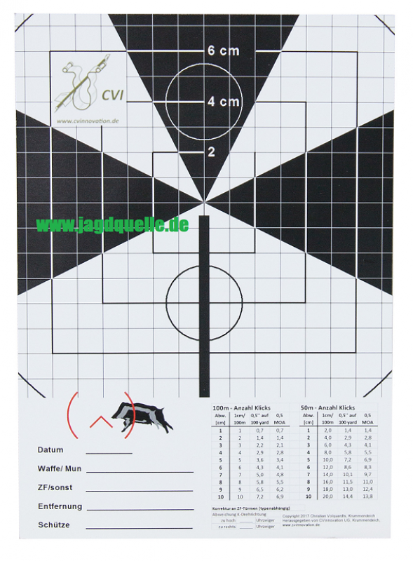 Die Scheibe wurde für jagdliche Kugelwaffen mit Einschießentfernungen von 50 m und 100 m entwickelt.