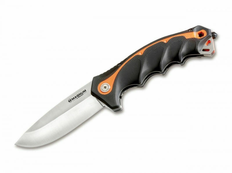 Die kugelgelagerte Droppoint Klinge aus zähem und schnitthaltigem 440B-Stahl ist auch mit dicken Arbeitshandschuhen bequem zu öffnen.