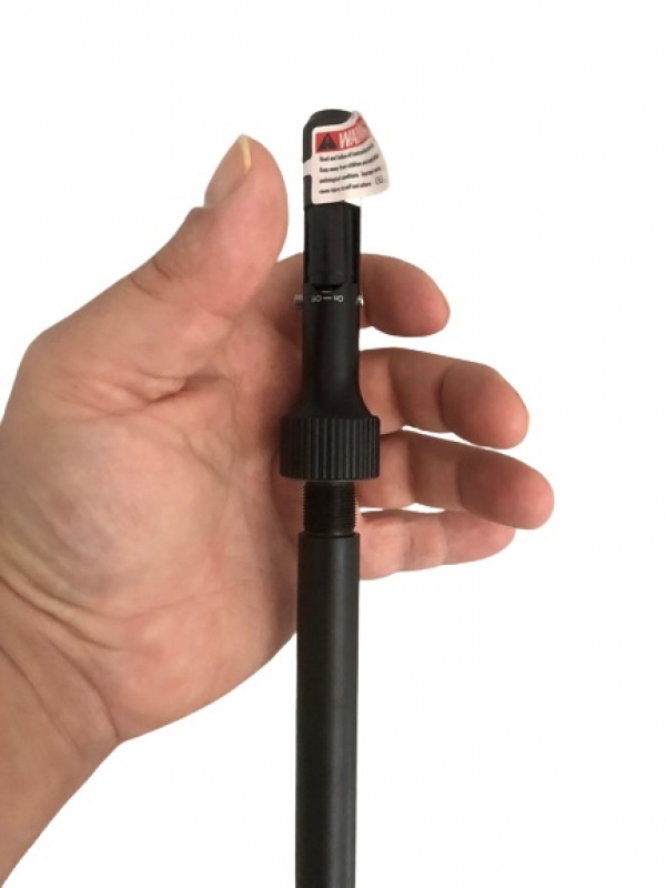 Zur Kontrolle des montierten Zielfernrohrs wird der Kaliberdorn auf die Mündung gesteckt.