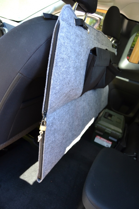 Leichtes Waffenfutteral aus Filz mit Befestigungsbändern zum Befestigen an den Kopfstützen.
