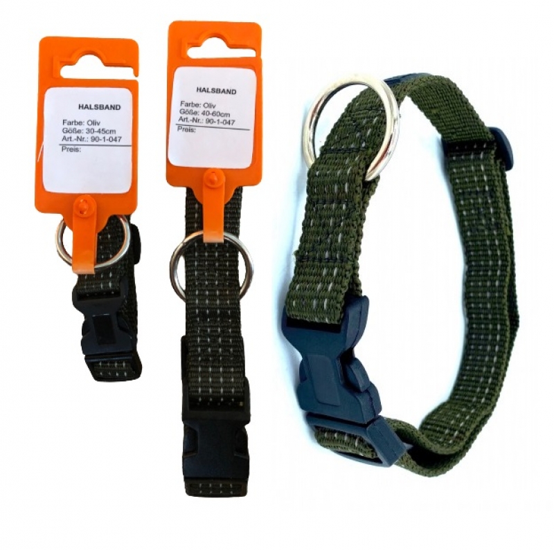 Die Farm-Land Nylon Halsung Oliv ist in unterschiedlichen Größen erhältlich.