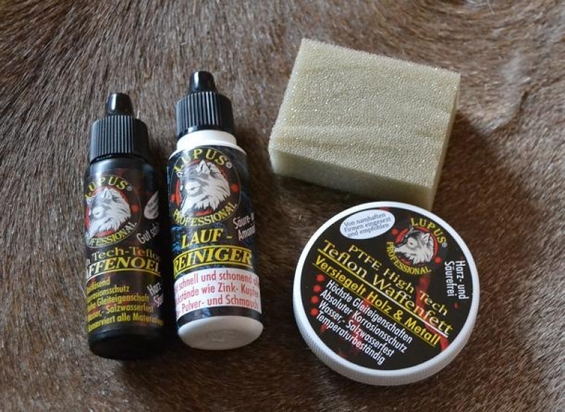 Teflon-Waffenpflege im preiswerten Set für Einsteiger. Schützen Sie Ihre Jagd- und Sportwaffen. Durch eine Behandlung wird die Waffe, auch der Schaft, im trockenen Zustand gegen Feuchtigkeit und Handschweiß resistent. Außerdem erhalten Sie durch die kugelförmigen Teflonpartikel eine perfekte Gleitfähigkeit bei allen mechanischen Bauteilen.
