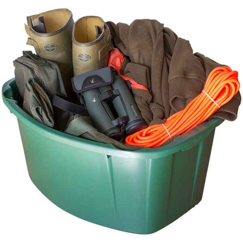 Stabile Jagdzubehörwanne (100% PVC), die aufgrund des lebensmittelechten Kunststoffs auch als Wildwanne verwendet werden kann. Die Wanne ist für Belastungen bis maximal 100 Kg ausgelegt. Durch die ovale Form lässt sich die Wanne sehr gut tragen und kann zudem ineinander oder aufeinander gestapelt werden. Inhalt 35 Liter, Maße (LxBxH) 59x37x28 cm.