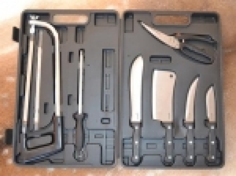 - Genietete Griffe, inklusive: • 20,3-cm-Fleischermesser • 16,5-cm-Hackbeil • 14,6-cm-Ausbein-/Filetiermesser • 10,8-cm-Abhäutemesser